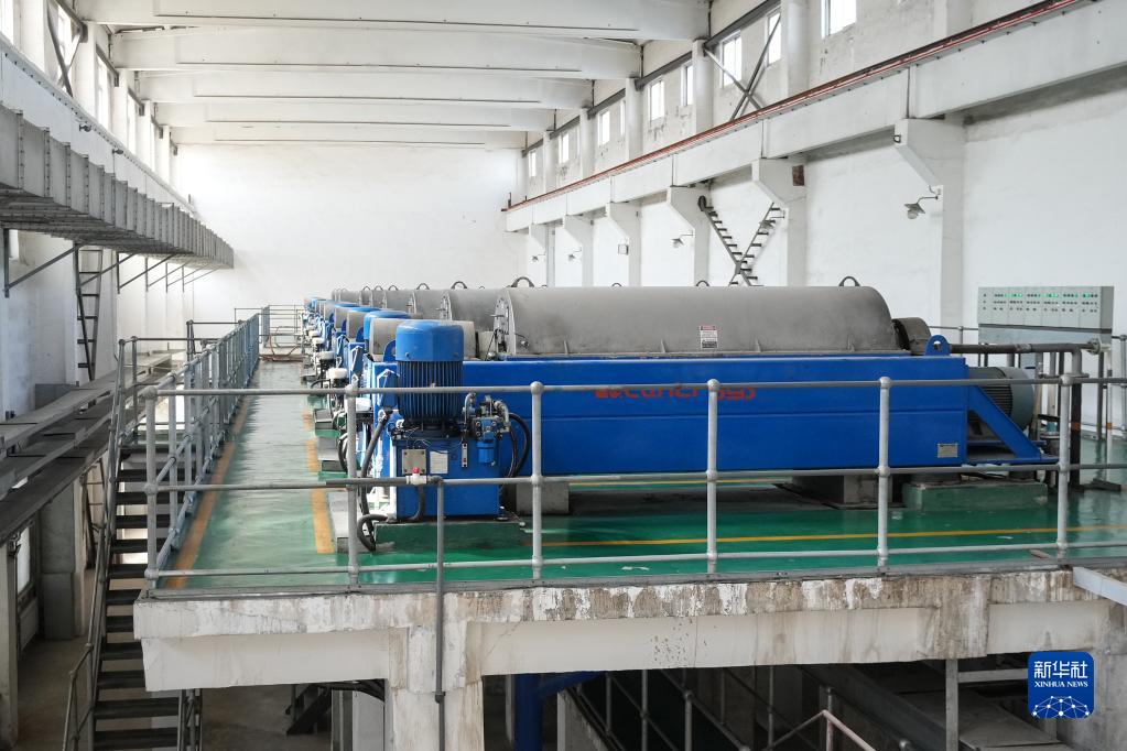 這是沈陽(yáng)南部污水處理廠(chǎng)污泥處理區域的離心機,處理污水過(guò)程中產(chǎn)生的剩余污泥,先進(jìn)入緩沖池,再進(jìn)入離心機進(jìn)行離心分離,隨后外運處理(3月17日攝)。