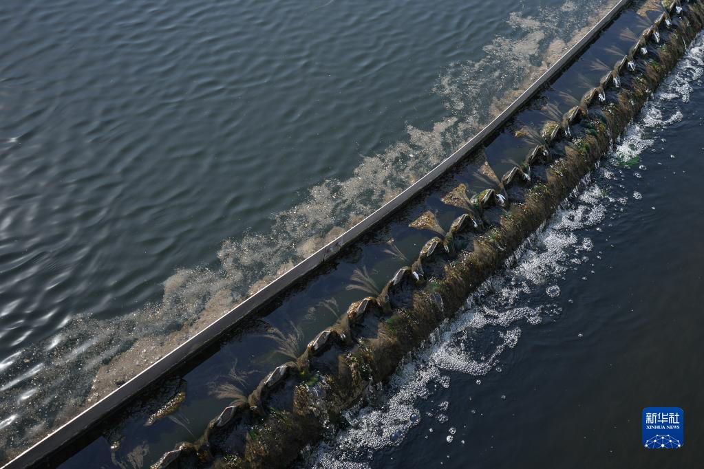 這是沈陽(yáng)南部污水處理廠(chǎng)二沉池,污水在二沉池通過(guò)物理的沉淀作用使泥水得到分離(3月17日攝)。