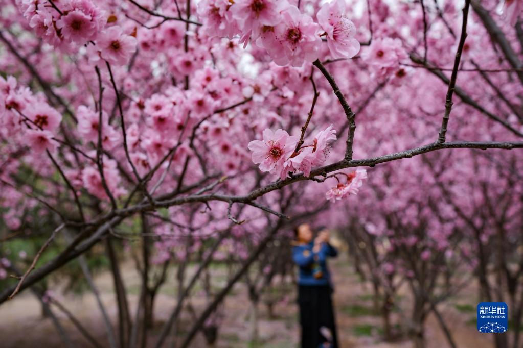 3月22日在河南省安陽(yáng)市殷都區的洹春園拍攝的美人梅。