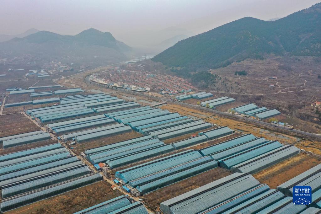 這是3月22日拍攝的燕崖鎮櫻桃種植示范園內櫻桃大棚(無(wú)人機照片)。