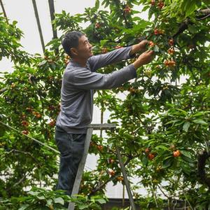 當下,山東省沂源縣燕崖鎮的300個(gè)大棚共計1000畝左右的大棚櫻桃陸續成熟上市,果農們搶抓農時(shí)進(jìn)行管護。