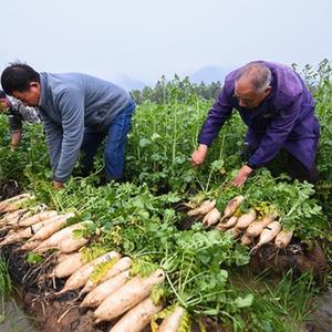 近日,在浙江省諸暨市姚江鎮國家級農業(yè)產(chǎn)業(yè)園,蔬菜基地里的蘿卜進(jìn)入春季豐收季,種植戶(hù)忙著(zhù)采摘、清洗、裝包,準備運往周邊縣市農貿批發(fā)市場(chǎng)。該基地是姚江鎮通過(guò)招引鄉賢回歸建立的項目,共占地100余畝,旨在拓寬當地農產(chǎn)品銷(xiāo)售渠道,帶動(dòng)周邊農戶(hù)增收。在蘿卜收獲結束后,這里將繼續栽種毛豆等農作物。