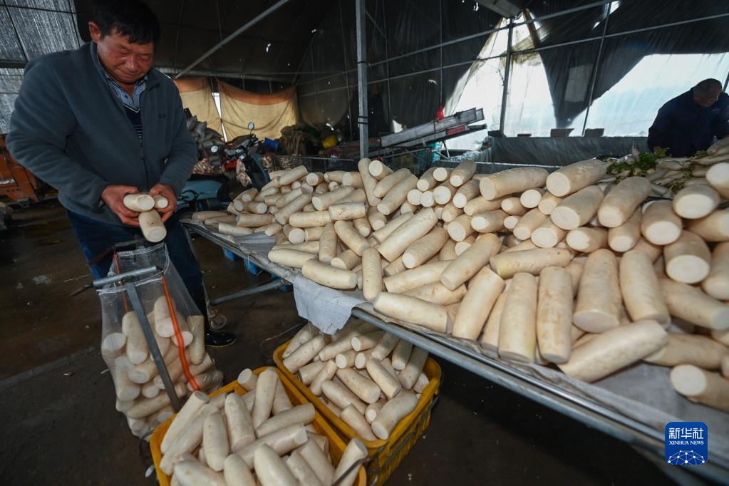 近日,在浙江省諸暨市姚江鎮國家級農業(yè)產(chǎn)業(yè)園,蔬菜基地里的蘿卜進(jìn)入春季豐收季,種植戶(hù)忙著(zhù)采摘、清洗、裝包,準備運往周邊縣市農貿批發(fā)市場(chǎng)。該基地是姚江鎮通過(guò)招引鄉賢回歸建立的項目,共占地100余畝,旨在拓寬當地農產(chǎn)品銷(xiāo)售渠道,帶動(dòng)周邊農戶(hù)增收。在蘿卜收獲結束后,這里將繼續栽種毛豆等農作物。