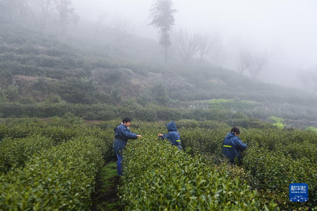 3月23日,里山鎮安頂村的茶農正在采摘安頂云霧茶。