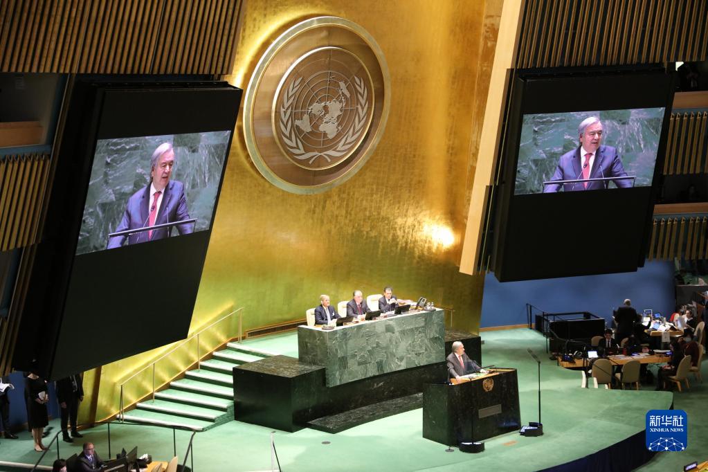 3月22日,在位于紐約的聯(lián)合國總部,聯(lián)合國秘書(shū)長(cháng)古特雷斯在聯(lián)合國2023年水事會(huì )議上致開(kāi)幕辭。
