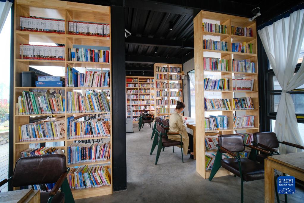3月22日,一名游客在西裴村“甲骨文書(shū)屋”讀書(shū)?!凹坠俏臅?shū)屋”于2021年建成,擁有3000余冊圖書(shū),并與安陽(yáng)市圖書(shū)館聯(lián)網(wǎng),實(shí)現資源共享,滿(mǎn)足了村民和游客的閱讀需求。