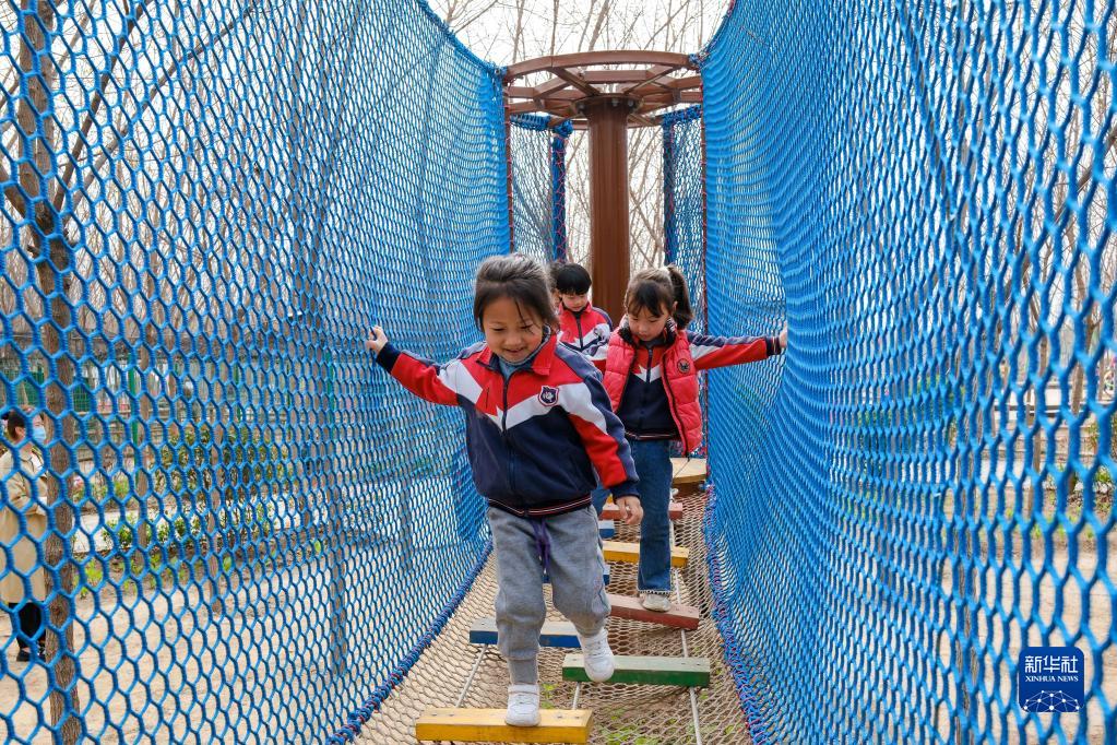 3月22日,呂村鎮星星幼兒園的小朋友在西裴村“豬豬樂(lè )園”兒童游樂(lè )場(chǎng)玩耍。