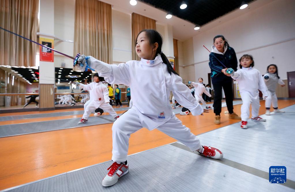 3月23日,青島市通濟實(shí)驗學(xué)校的學(xué)生在老師的指導下學(xué)習擊劍。