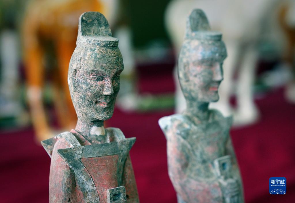 這是洛陽(yáng)孟津朱倉北朝墓內出土的陶武士俑(3月15日攝)。