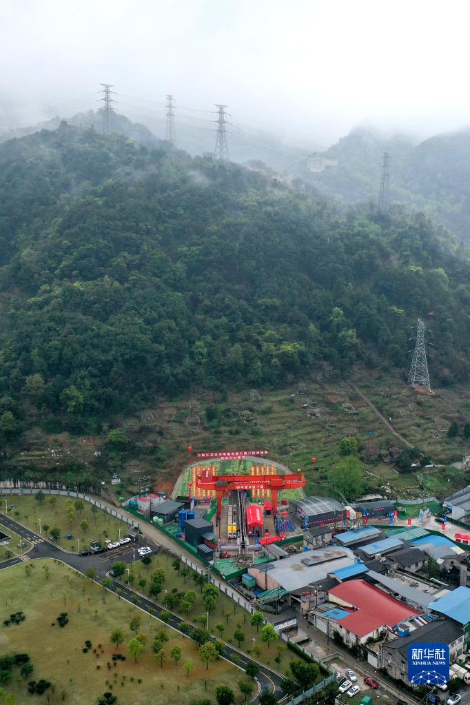 3月24日拍攝的溫州甌江引水工程西向分水隧洞入口(無(wú)人機照片)。