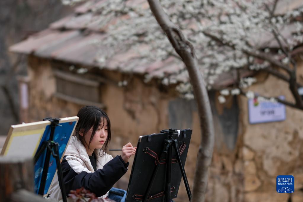 3月23日,來(lái)自鄭州市信息技術(shù)學(xué)校的學(xué)生在高家臺村寫(xiě)生。
