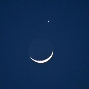 當晚,一輪彎彎的月牙與太陽(yáng)系最明亮的行星在天空上演一場(chǎng)奇妙的天象——月掩金星。