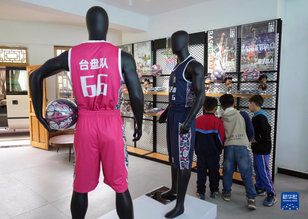 3月25日,幾名男孩正在臺盤(pán)村的“村BA官方線(xiàn)下體驗館”里參觀(guān)。
