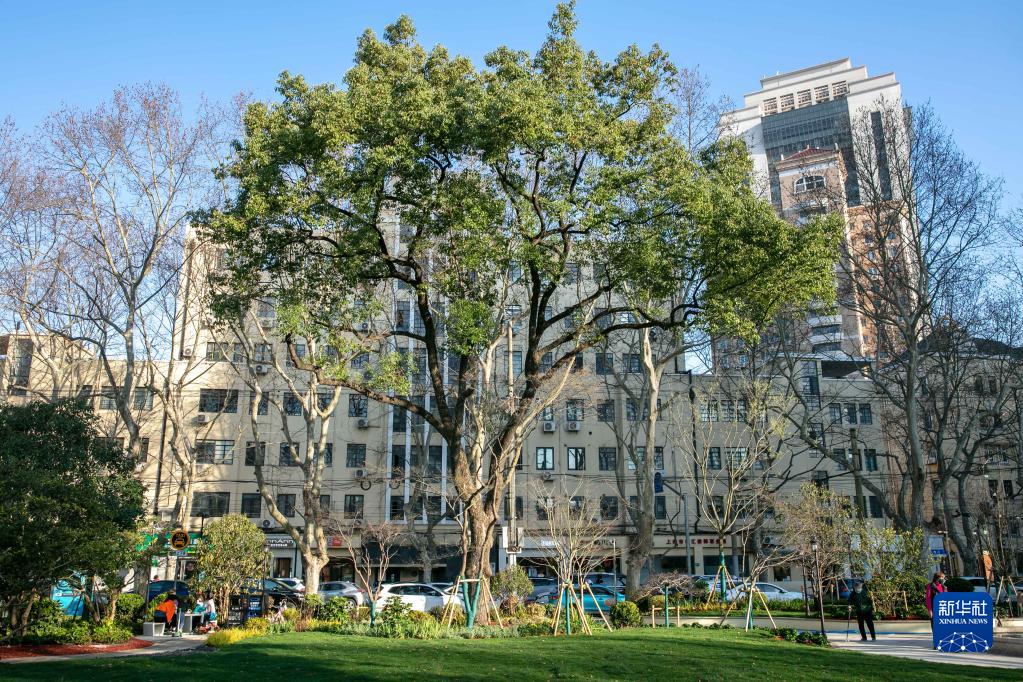 這是3月14日拍攝的上海市徐匯區衡山路旁的一處口袋公園。