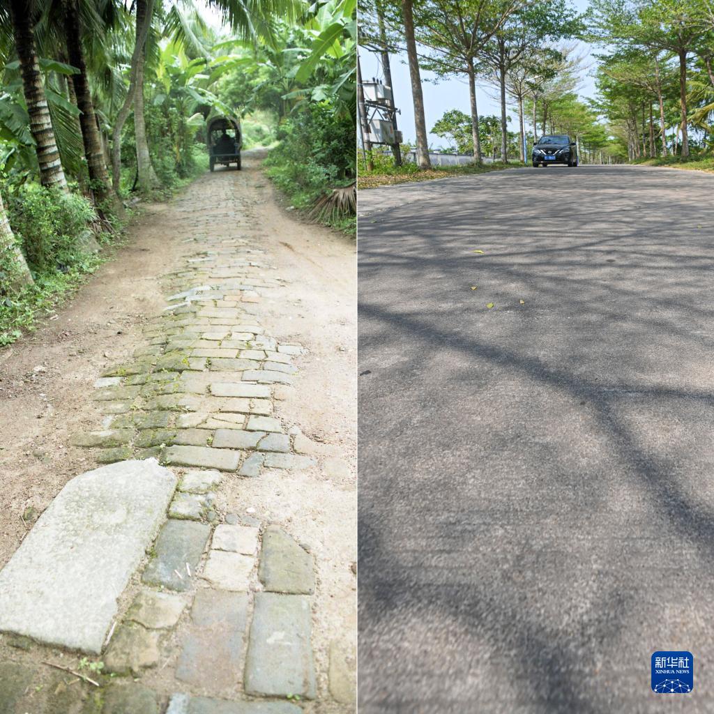 這是一張拼版照片,左圖為1999年5月1日拍攝的一輛三輪車(chē)行駛在樂(lè )城村內石磚小道上(新華社發(fā),蒙鐘德攝);右圖為2023年3月24日拍攝的一輛汽車(chē)行駛在樂(lè )城村內水泥路上(新華社記者蒲曉旭攝)。