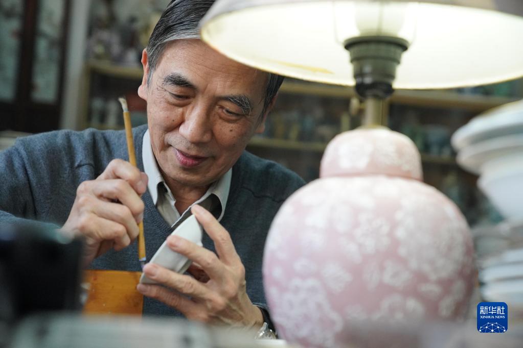 2月24日,粵東磁廠(chǎng)第三代傳人曹志雄在制作彩瓷。新華社記者 呂小煒 攝