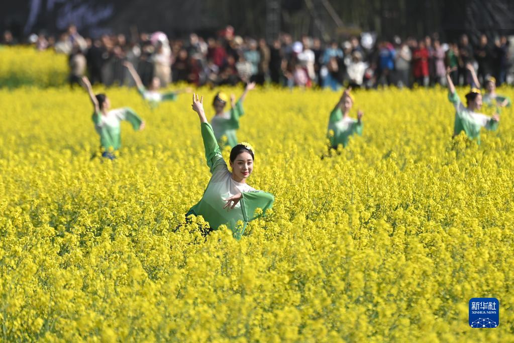 3月26日,演員在梅蓉村的油菜花田里表演。