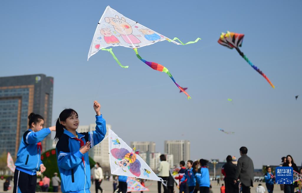 3月26日,在河北滄州渤海新區黃驊市港城產(chǎn)業(yè)園區,孩子在放風(fēng)箏。