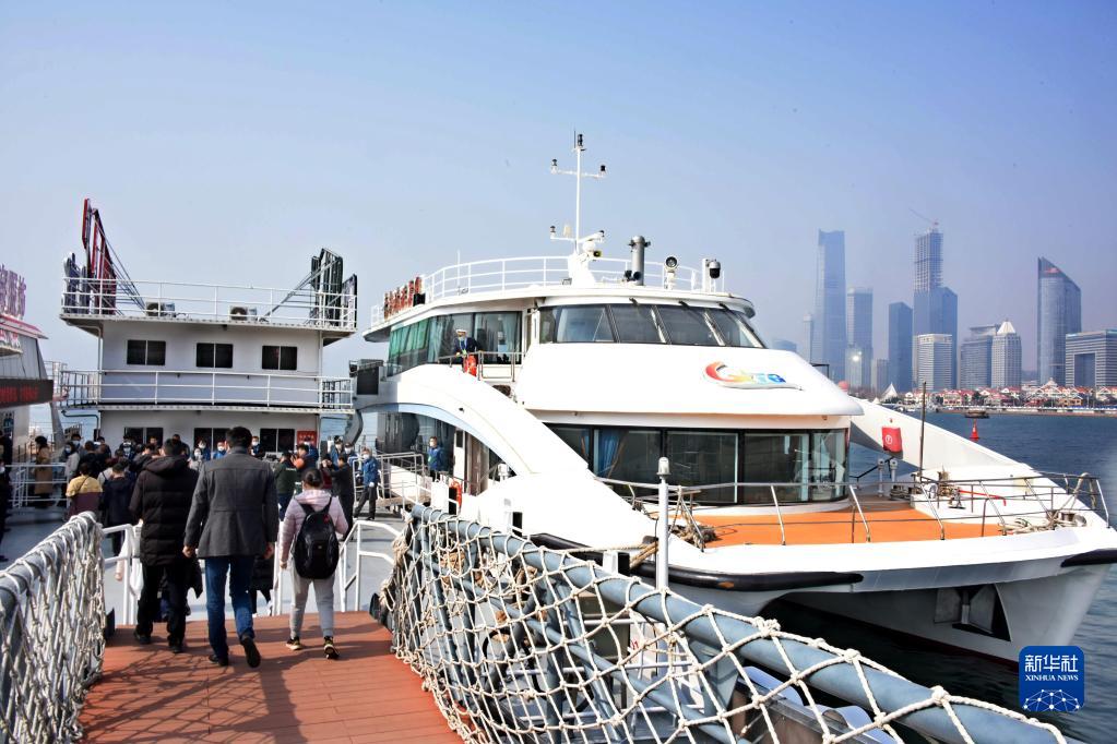 3月27日,游客在青島奧林匹克帆船中心游船碼頭準備登船。