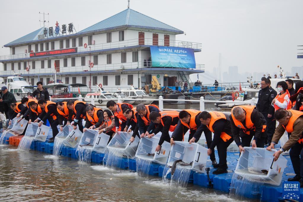 當日是中華鱘保護日,武漢漁政碼頭和軍山碼頭分別舉行中華鱘放流活動(dòng)。
