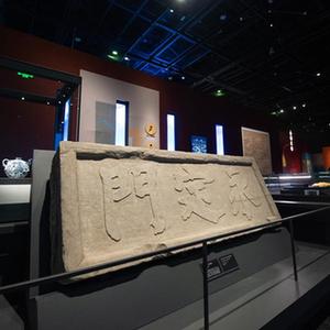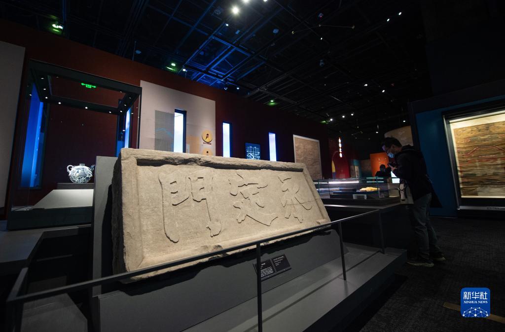 這是3月27日拍攝的展出的永定門(mén)石匾。
