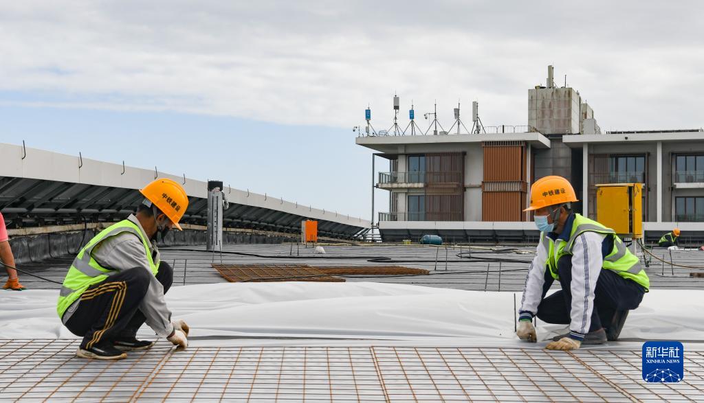 工人在博鰲零碳示范區建筑綠色化改造項目中施工(1月12日攝)。