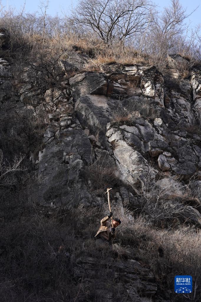 山西省壺關(guān)縣大峽谷鎮青龍峽村村民申森在清理路基上的雜物(3月8日攝)。新華社記者 詹彥 攝