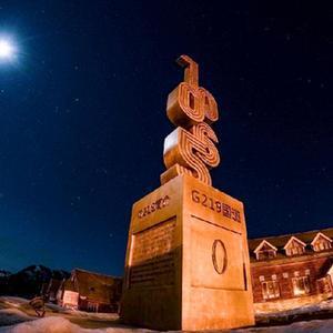 3月28日夜晚拍攝的G219國道0公里紀念碑。