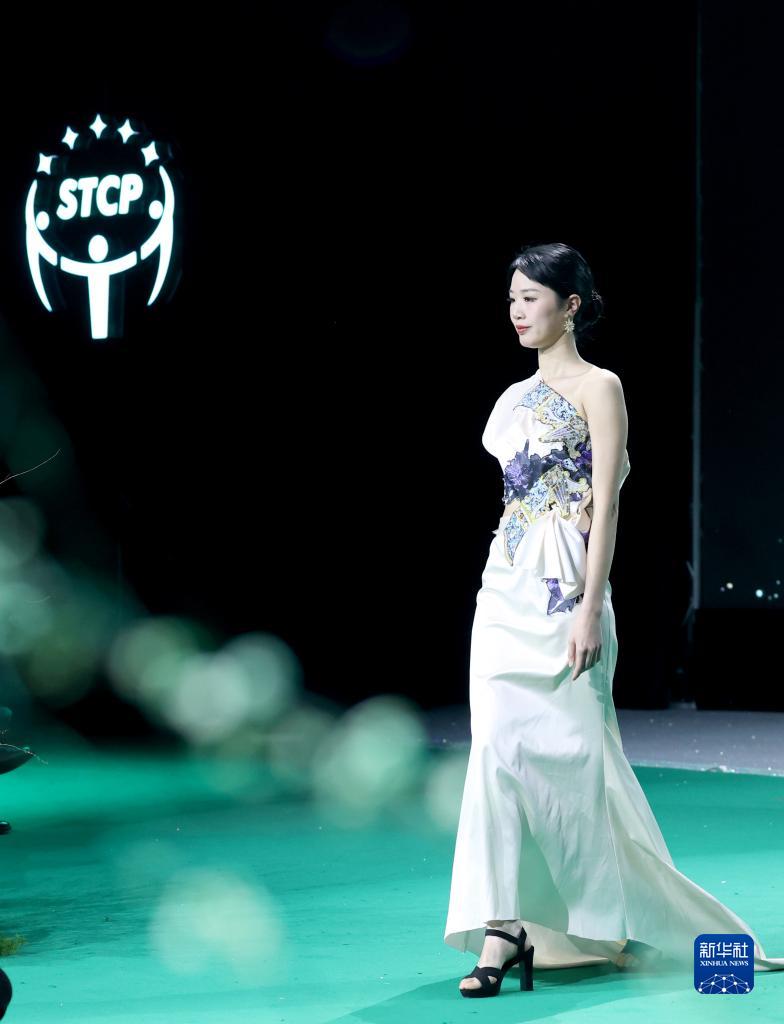 3月29日,模特在“綠色纖維制品可信平臺”發(fā)布會(huì )上展示可循環(huán)再利用的時(shí)裝。