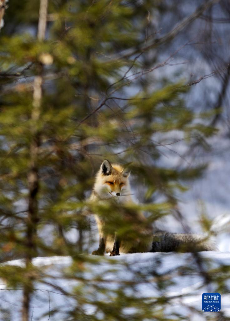 3月29日,一只赤狐在喀納斯風(fēng)景區覓食。