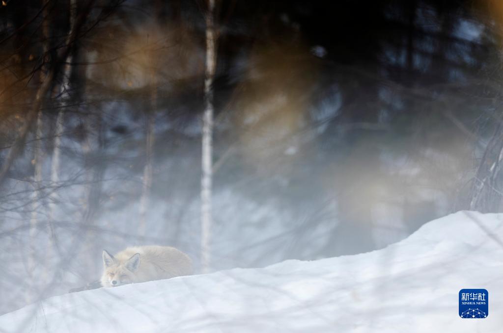 3月29日,一只赤狐在喀納斯風(fēng)景區休憩。