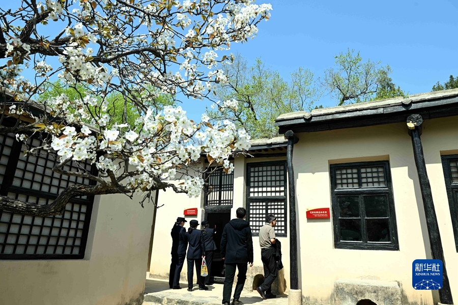 3月29日,游客在春花盛開(kāi)的西柏坡中共中央舊址參觀(guān)。