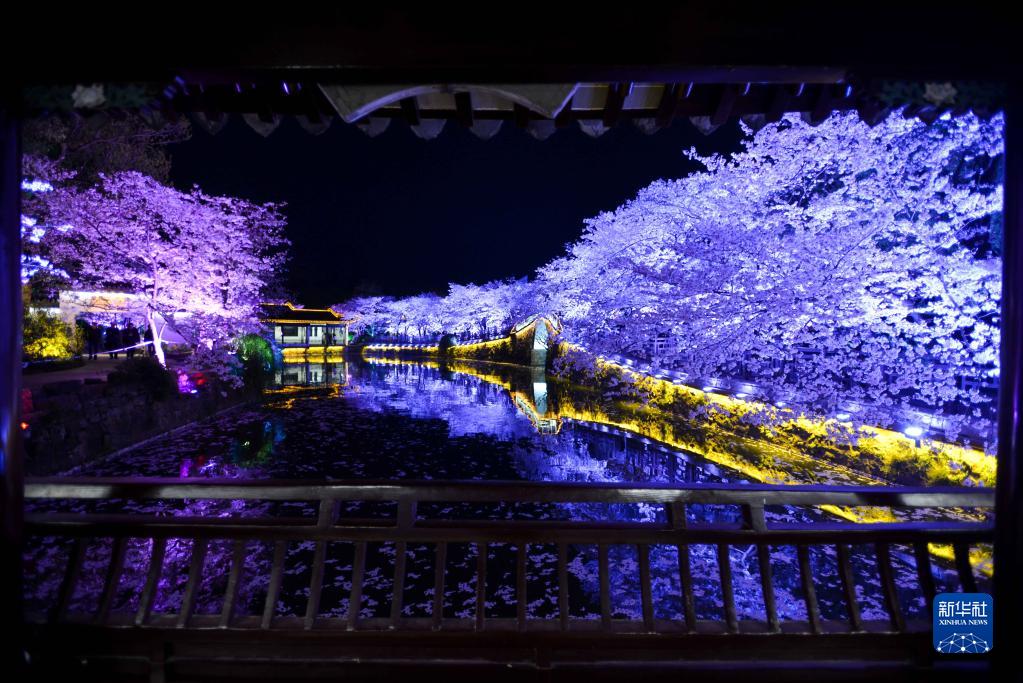 近日,江蘇無(wú)錫太湖黿頭渚景區里櫻花盛放,許多游客選擇夜賞櫻花,感受春天的浪漫。