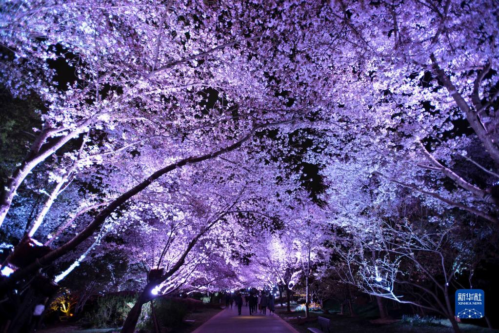 近日,江蘇無(wú)錫太湖黿頭渚景區里櫻花盛放,許多游客選擇夜賞櫻花,感受春天的浪漫。
