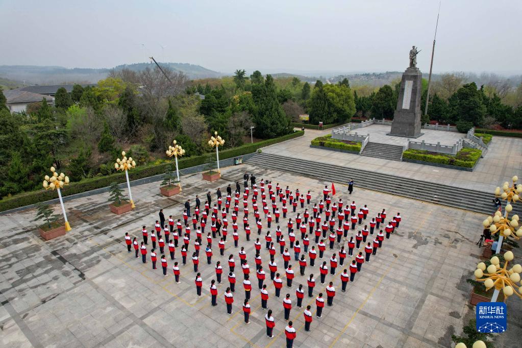 3月30日,學(xué)生在皖東烈士陵園祭奠先烈(無(wú)人機照片)。
