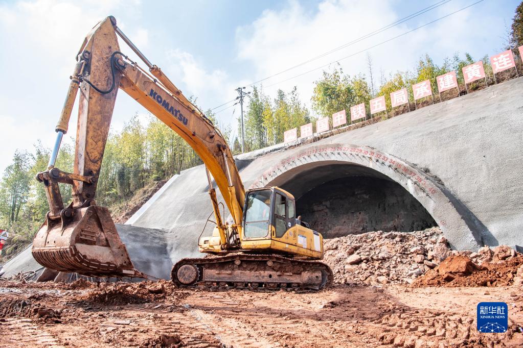 3月30日,在成渝中線(xiàn)高鐵首座隧道—黃連堡隧道施工現場(chǎng),工程機械在進(jìn)行現場(chǎng)作業(yè)。