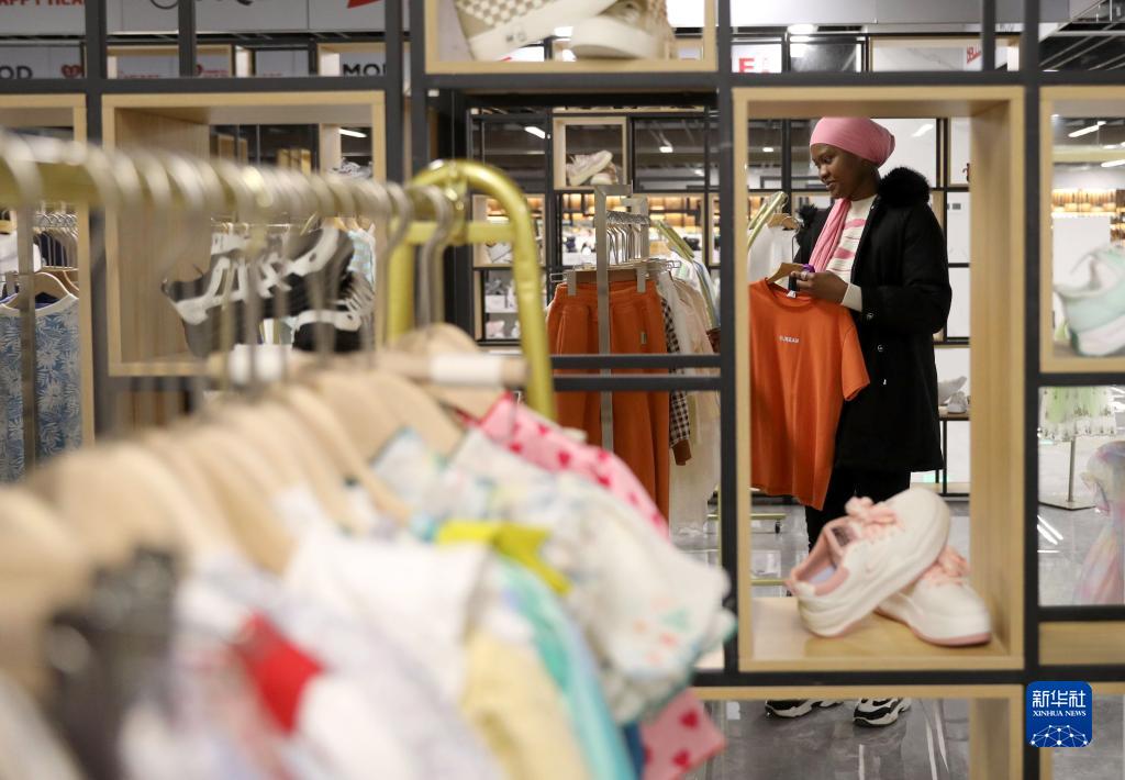 3月30日,在織里象嶼跨境電商產(chǎn)業(yè)服務(wù)平臺,一名“洋主播”在直播前挑選童裝。