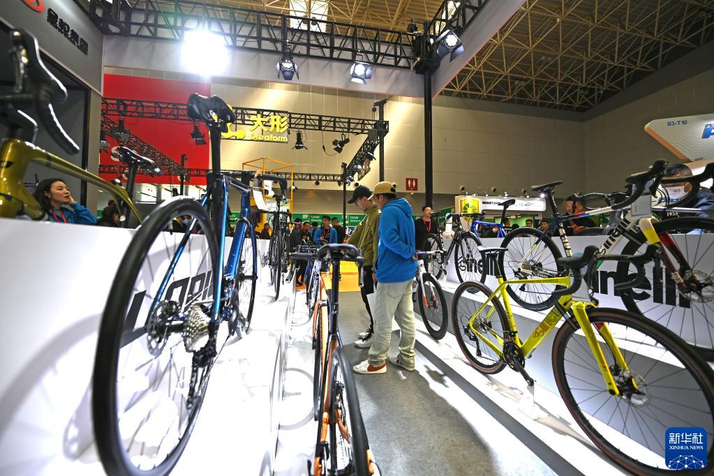 3月30日,觀(guān)眾在展會(huì )上參觀(guān)展出的自行車(chē)。