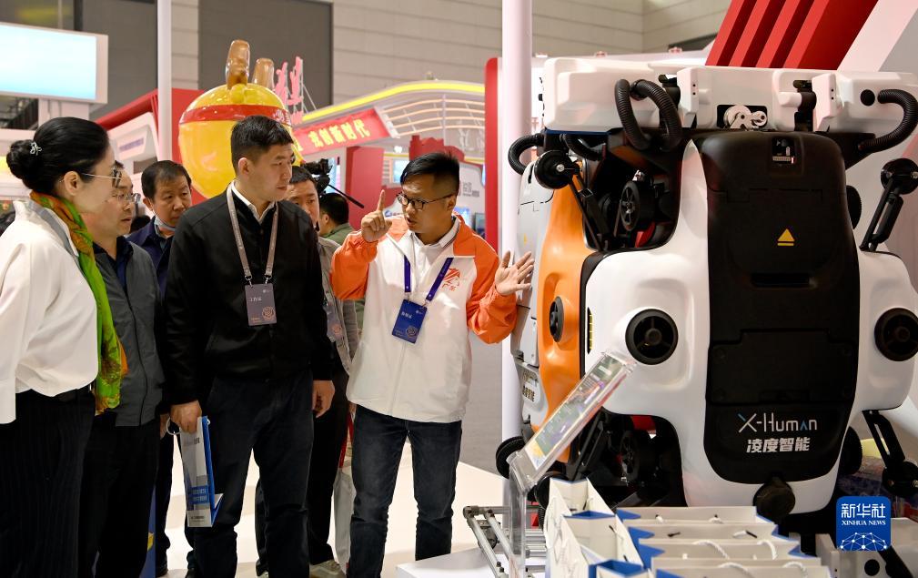 3月30日,首屆全國退役軍人創(chuàng )業(yè)創(chuàng )新成果展交會(huì )現場(chǎng),參展人員向參觀(guān)者介紹展品。