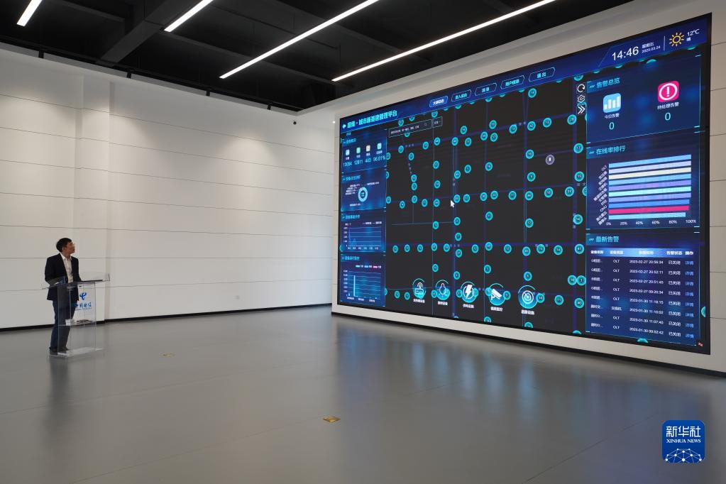 河北雄安新區中國電信智慧城市產(chǎn)業(yè)園的工作人員展示數字道路運營(yíng)系統(3月24日攝)。