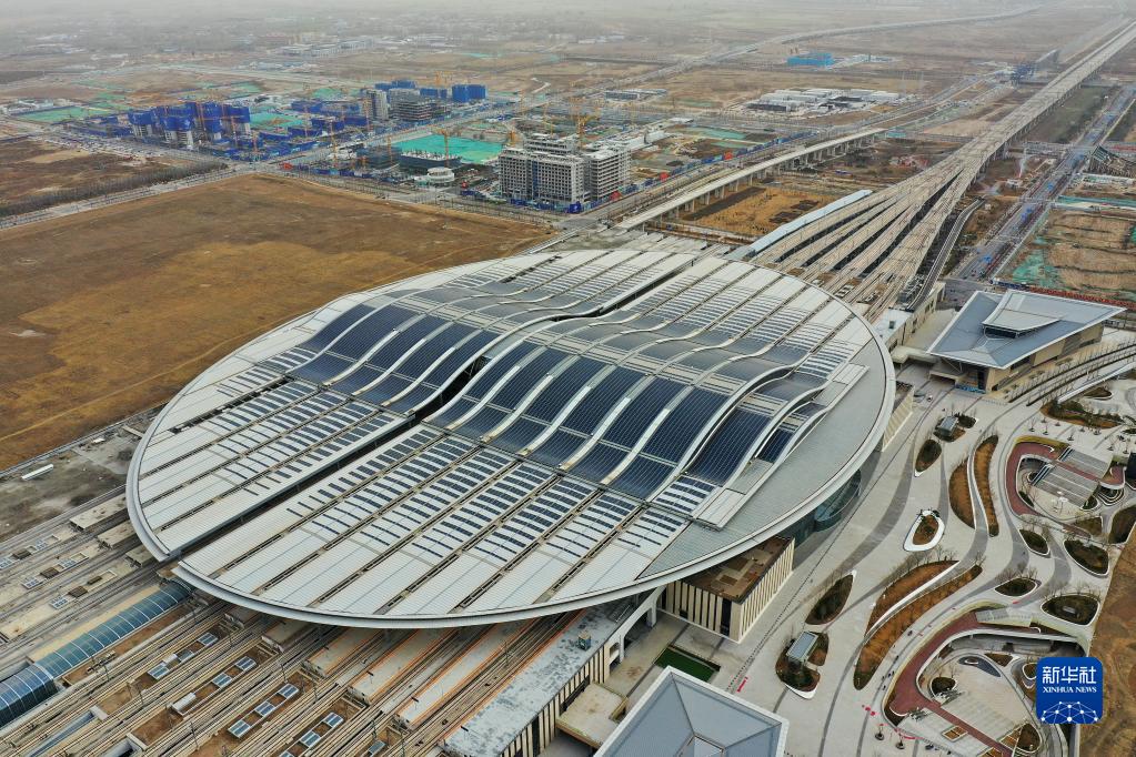 這是京雄城際鐵路雄安站(3月23日攝,無(wú)人機照片)。