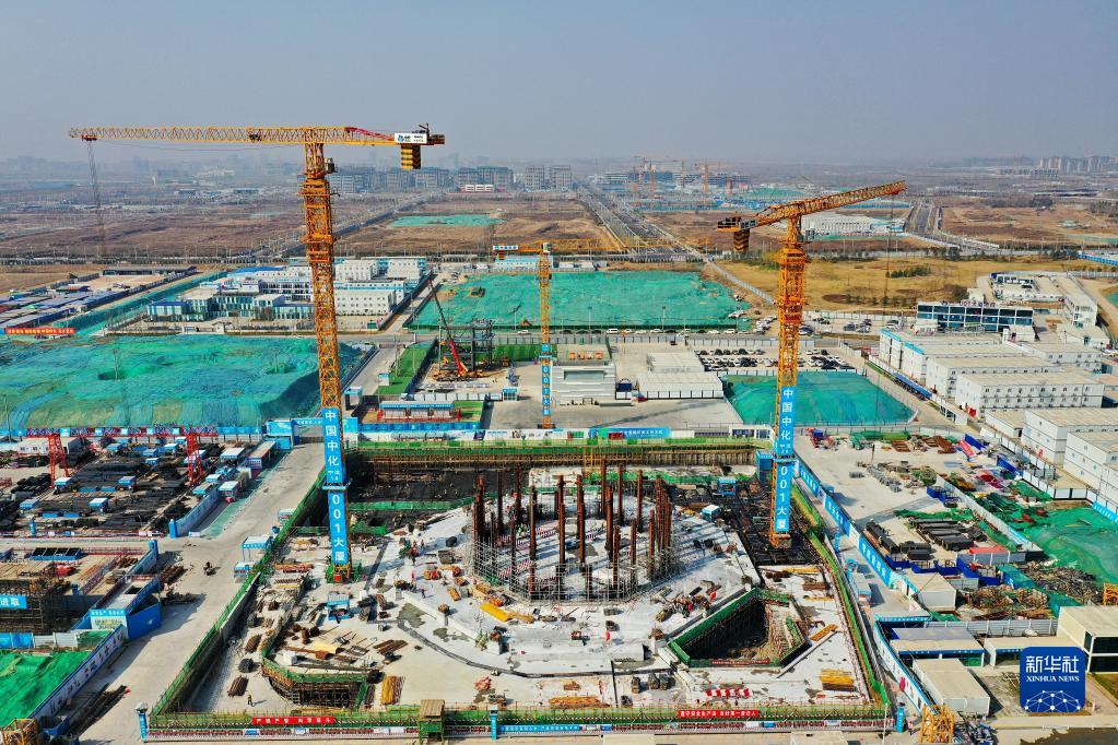 這是位于雄安新區啟動(dòng)區的中國中化雄安總部001大廈項目建設現場(chǎng)(3月30日攝,無(wú)人機照片)。