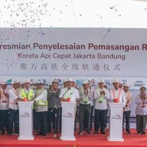 雅萬(wàn)高鐵全線(xiàn)軌道鋪通儀式3月31日在印度尼西亞首都雅加達舉行,這標志著(zhù)雅萬(wàn)高鐵全線(xiàn)鋪軌完成,為高質(zhì)量開(kāi)通運營(yíng)奠定了堅實(shí)基礎。