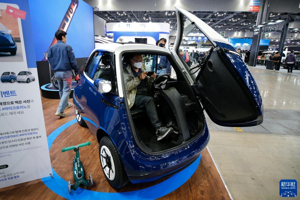 這是3月31日在韓國京畿道高陽(yáng)市韓國國際展覽中心的“2023首爾移動(dòng)出行展”上拍攝的微型汽車(chē)。