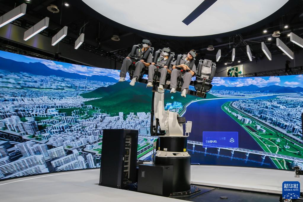 3月31日,在韓國京畿道高陽(yáng)市韓國國際展覽中心,人們在“2023首爾移動(dòng)出行展”上體驗虛擬城市空中交通工具。