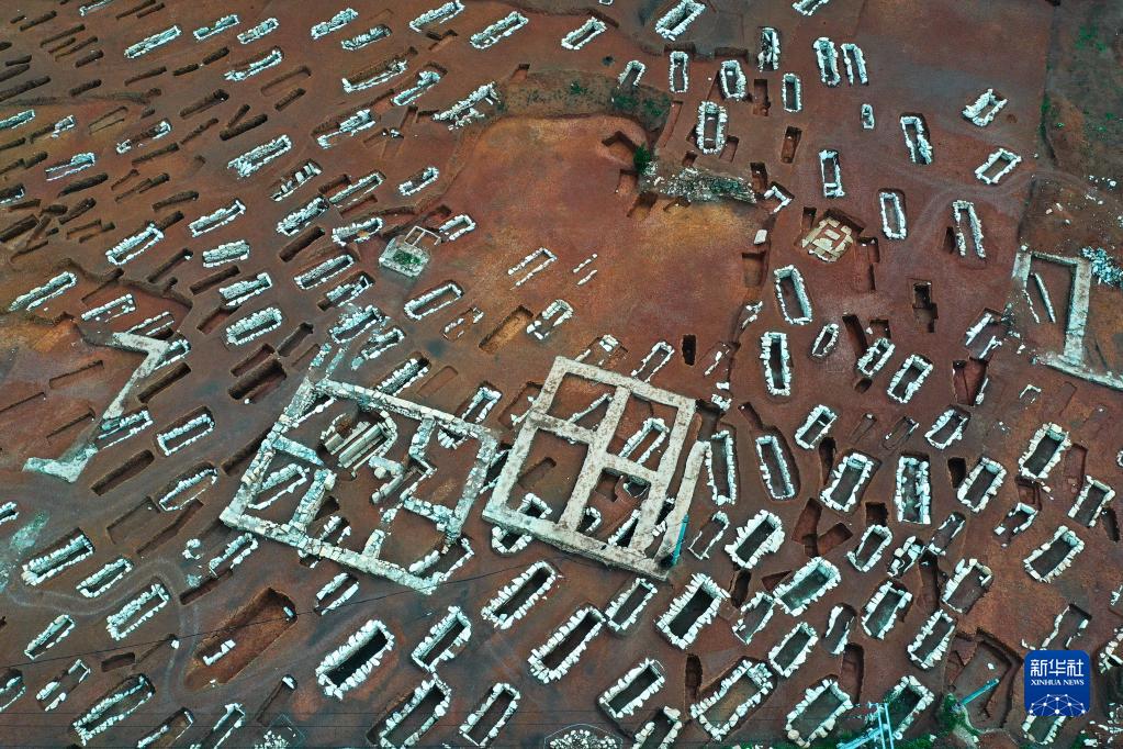 3月30日拍攝的貴州貴安新區大松山墓群挖掘現場(chǎng)(無(wú)人機照片)。