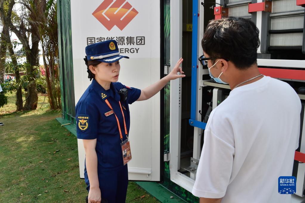 消防監督員在博鰲零碳示范區開(kāi)展零碳項目消防安全檢查(3月26日攝)。