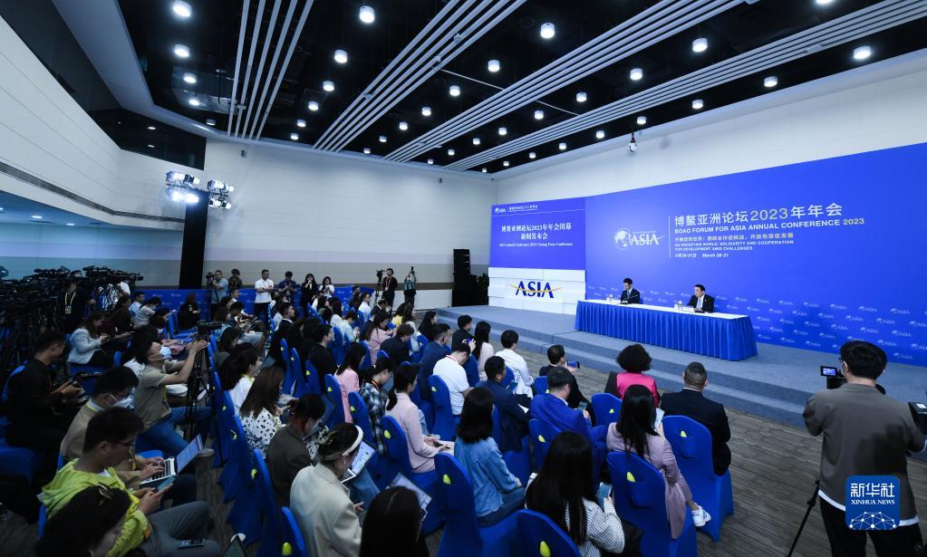3月31日拍攝的博鰲亞洲論壇2023年年會(huì )閉幕新聞發(fā)布會(huì )現場(chǎng)。