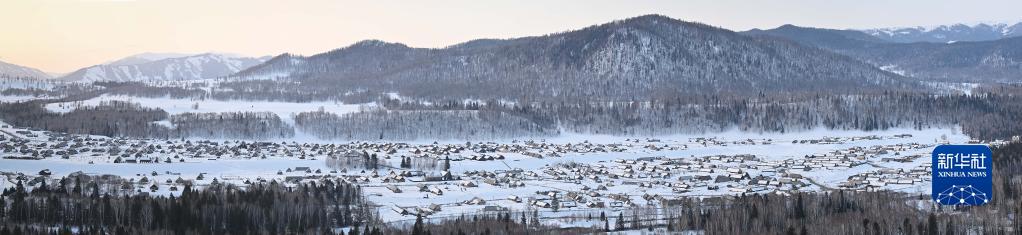 3月30日早晨的禾木村(拼接照片)。