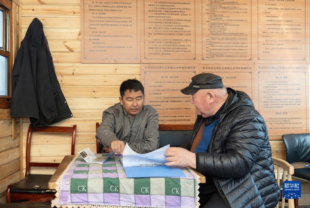 3月30日,蘇卡(左)和馬隊隊長(cháng)葉爾肯·沙依普拉討論馬場(chǎng)升級改造的事。